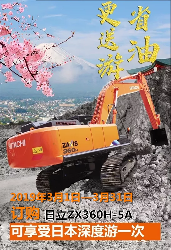 說(shuō)了這么多還是得您使用了才知道,即日起購買(mǎi)日立ZX360H-5A,重慶日和東浦邀請您去日本看櫻花,購買(mǎi)即送日本深度游一次,心動(dòng)不如行動(dòng)馬上聯(lián)系當地業(yè)務(wù)人員購買(mǎi)吧!