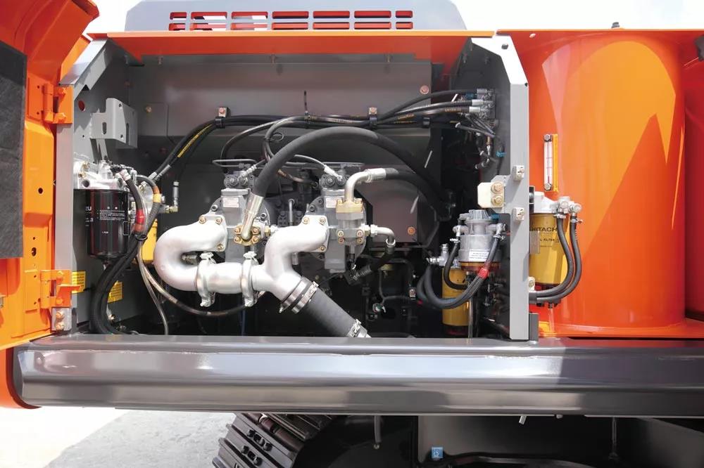 挖掘機的第二核心部件:液壓泵,還是采用高可靠性的分體式斜軸式柱塞泵。泵室布局著(zhù)日常保養的濾芯,燃油主濾、燃油預濾、先導濾清器、機油濾清器和電動(dòng)燃油泵集中在這,方便維護保養。